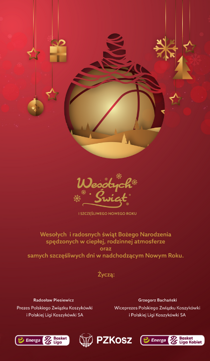 Wszystkim kibicom, zawodnikom, sponsorom, trenerom, sędziom, komisarzom, pracownikom klubów oraz dziennikarzom życzymy zdrowych i pogodnych Świąt Bożego Narodzenia oraz szczęśliwego Nowego Roku!