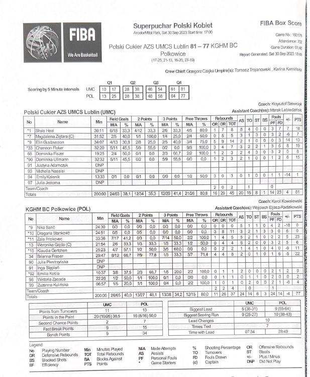 | Polski Cukier AZS UMCS Lublin | Kwarta 1 | KGHM BC Polkowice | ||