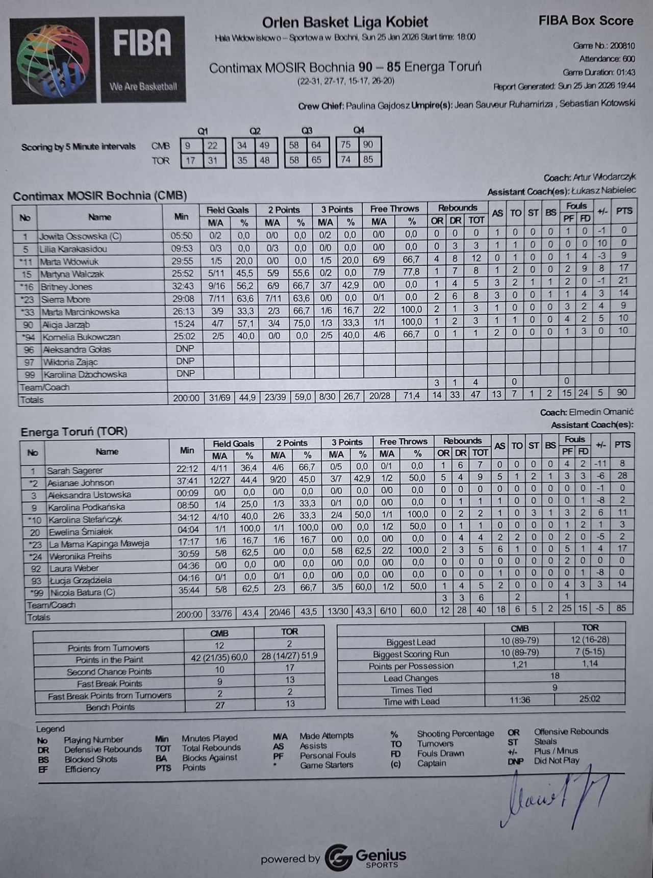 | 90 | Alicja Jarząb | 10 | 15:24 | 3/4 | 75.0 | 1/3 | 33.3 | 4/7 | 57.1 | 1/1 | 100.0 | 1 | 2 | 3 | 1 | 4 | 2 | 1 |   |   |   | 10 | 5 | |