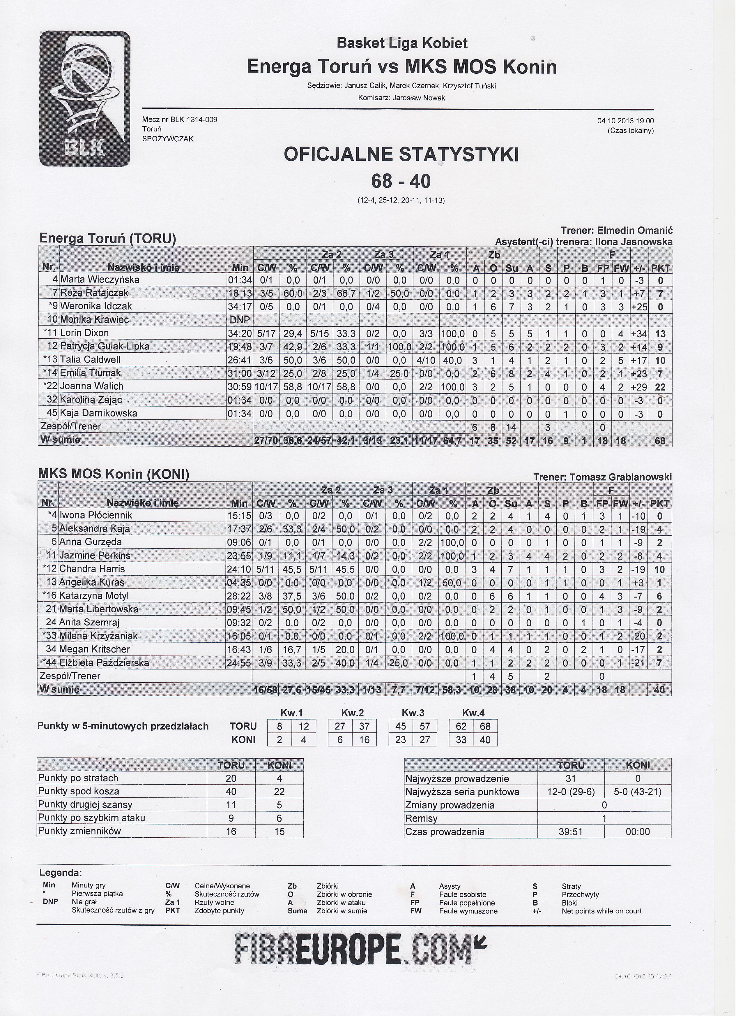 | Energa Toruń | Kwarta 1 | MKS MOS Konin | ||
