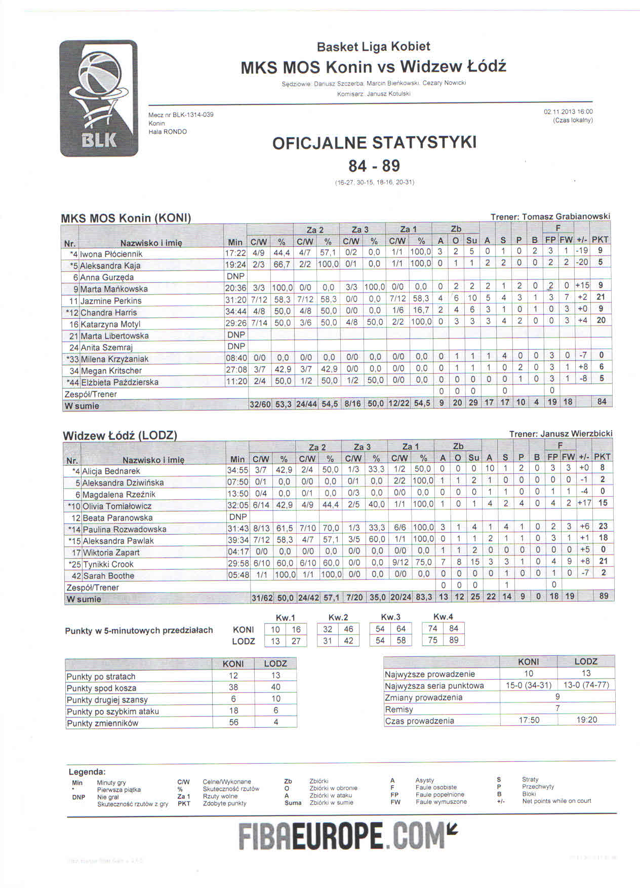 | 44 | Elżbieta Paździerska | 5 | 11:20 | 1/2 | 50.0 | 1/2 | 50.0 | 2/4 | 50.0 |   |   |   |   |   |   | 3 | 1 |   | 1 |   |   | 4 | -8 | |