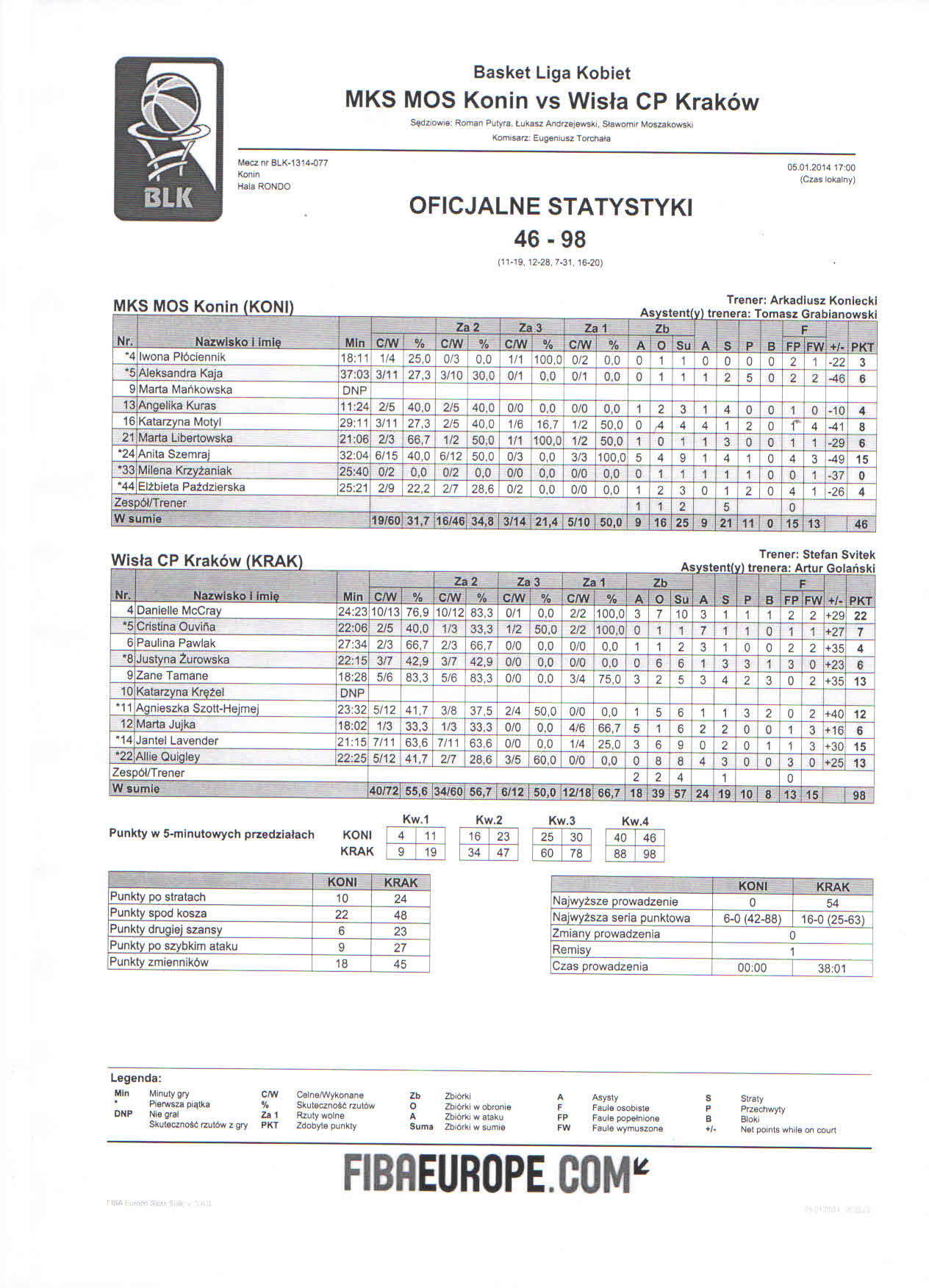 M. Jujka - faul osobisty w akcji rzutowej (1 F, 2 Faul zespołu). Przyznano 2 rzuty wolne. Faulowany: A. Szemraj |