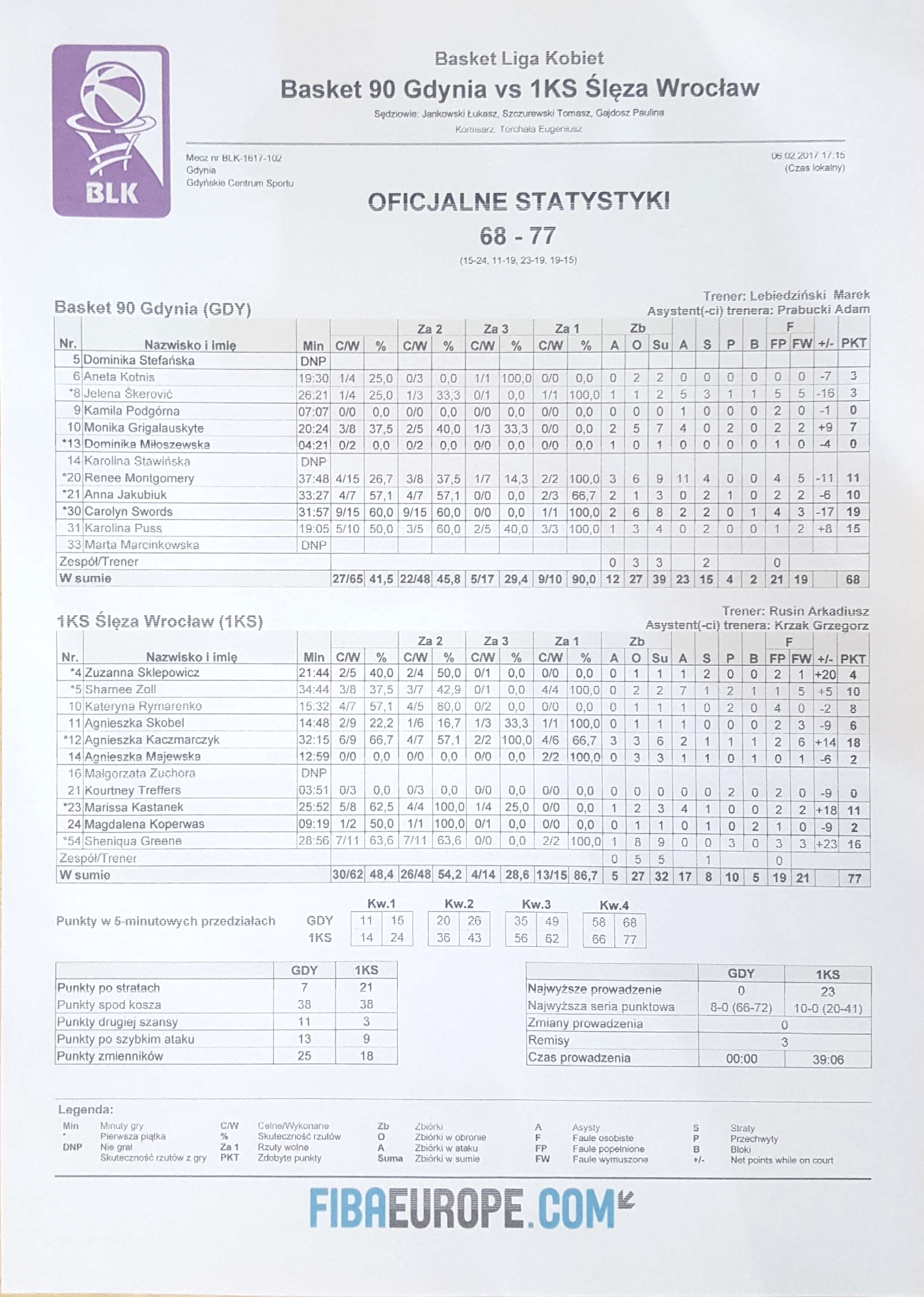 | 24 | Magdalena Koperwas | 2 | 09:19 | 1/1 | 100.0 | 0/1 | 0.0 | 1/2 | 50.0 |   |   |   | 1 | 1 |   | 1 |   | 1 |   | 2 |   | 3 | -9 | |