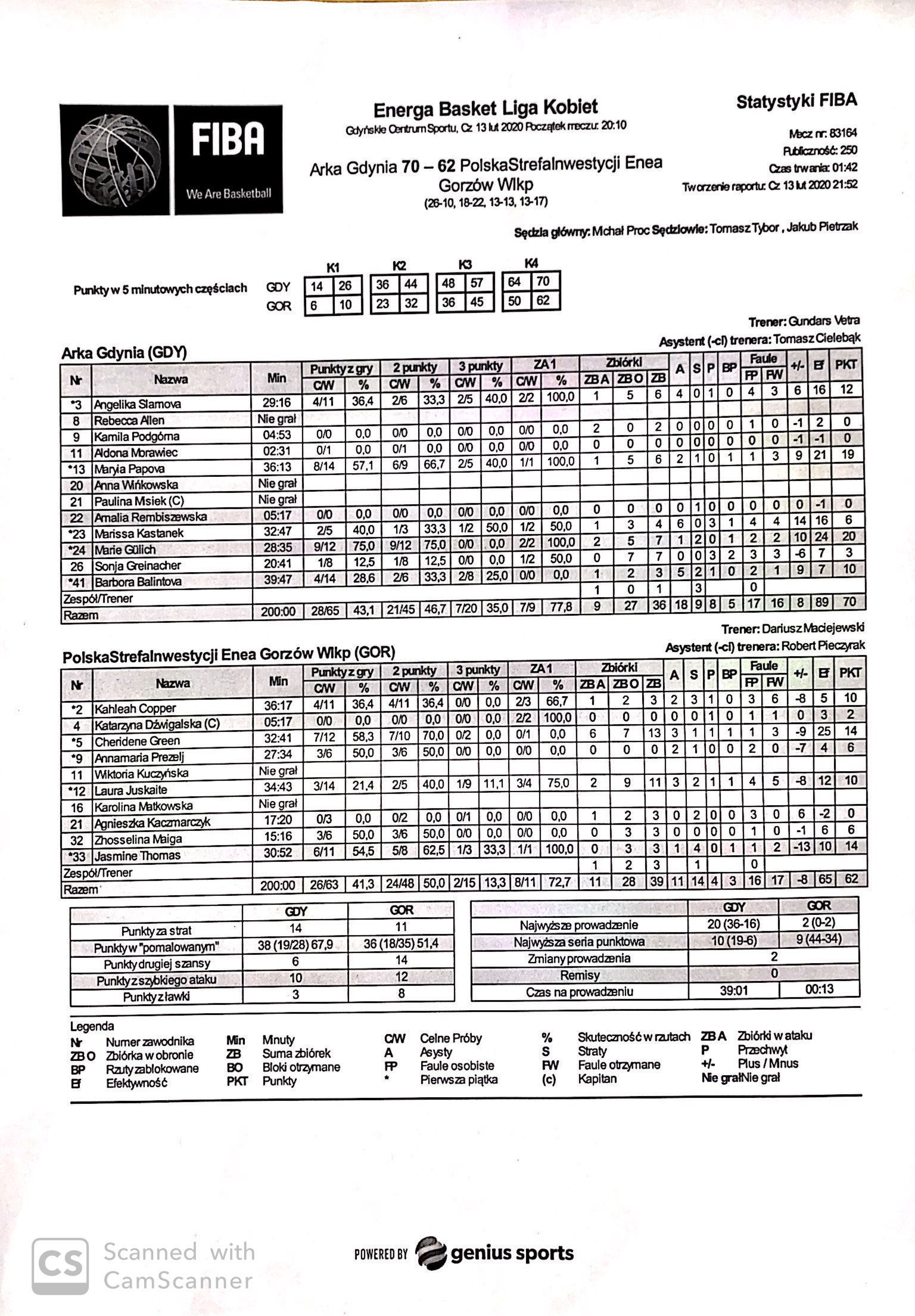 | 21 | Agnieszka Kaczmarczyk | 0 | 17:20 | 0/2 | 0.0 | 0/1 | 0.0 | 0/3 | 0.0 |   |   | 1 | 2 | 3 |   | 3 |   | 2 |   |   |   | -2 | 6 | |
