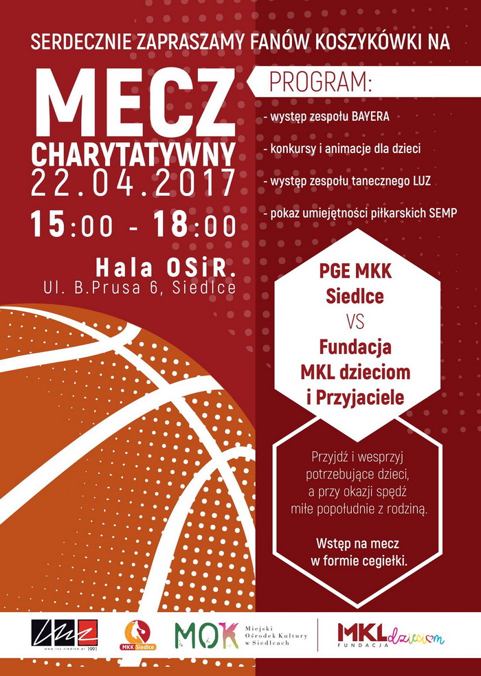 Charytatywne wydarzenie rozpocznie się w sobotę 22 kwietnia o 15:00 w hali ARMS. W jego ramach PGE MKK rozegra mecz z Fudacją MKL dzieciom. Wstęp na spotkanie w formie cegiełki.