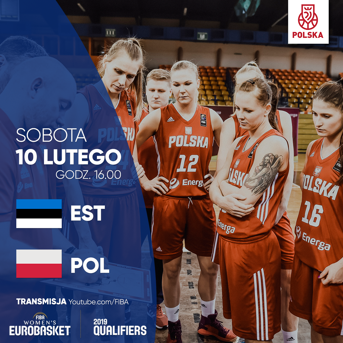 Mecz Estonia - Polska w sobotę o godz. 16.00. Transmisja na kanale YouTube FIBA