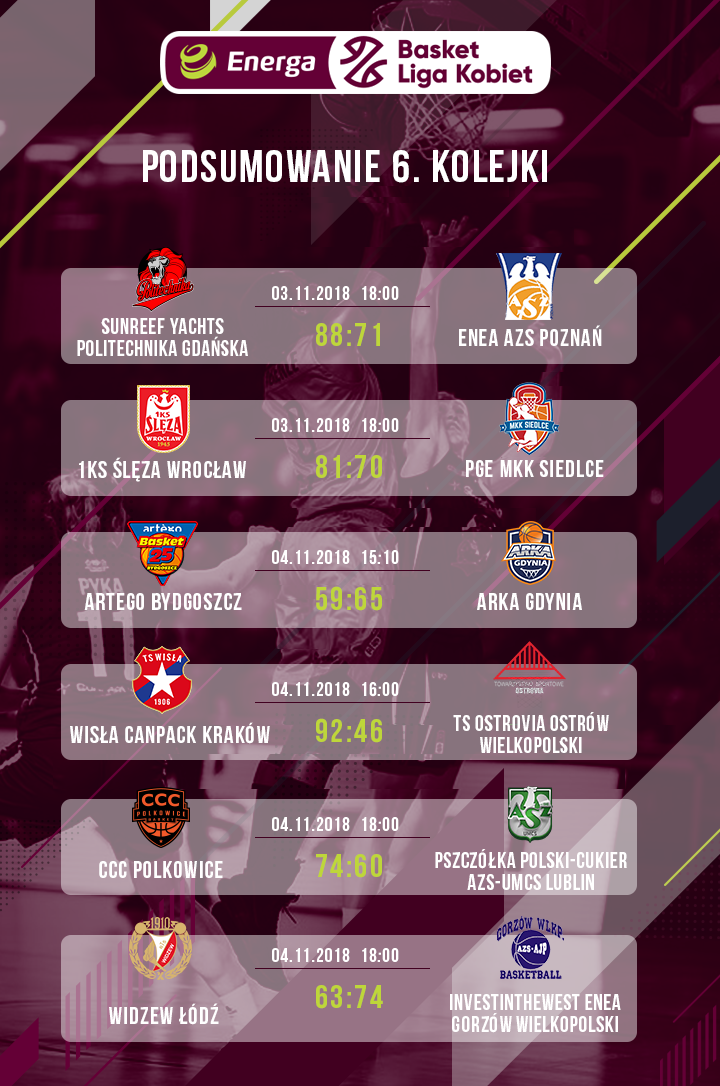 Maegan Conwright była nie do zatrzymania - zanotowała aż 27 punktów, 6 zbiórek i 8 asyst. 15 punktów, 6 zbiórek i 4 asysty dodała Martyna Koc. Irena Matović zdobyła 21 punktów, 6 zbiórek i 3 asysty dla ekipy przyjezdnej.