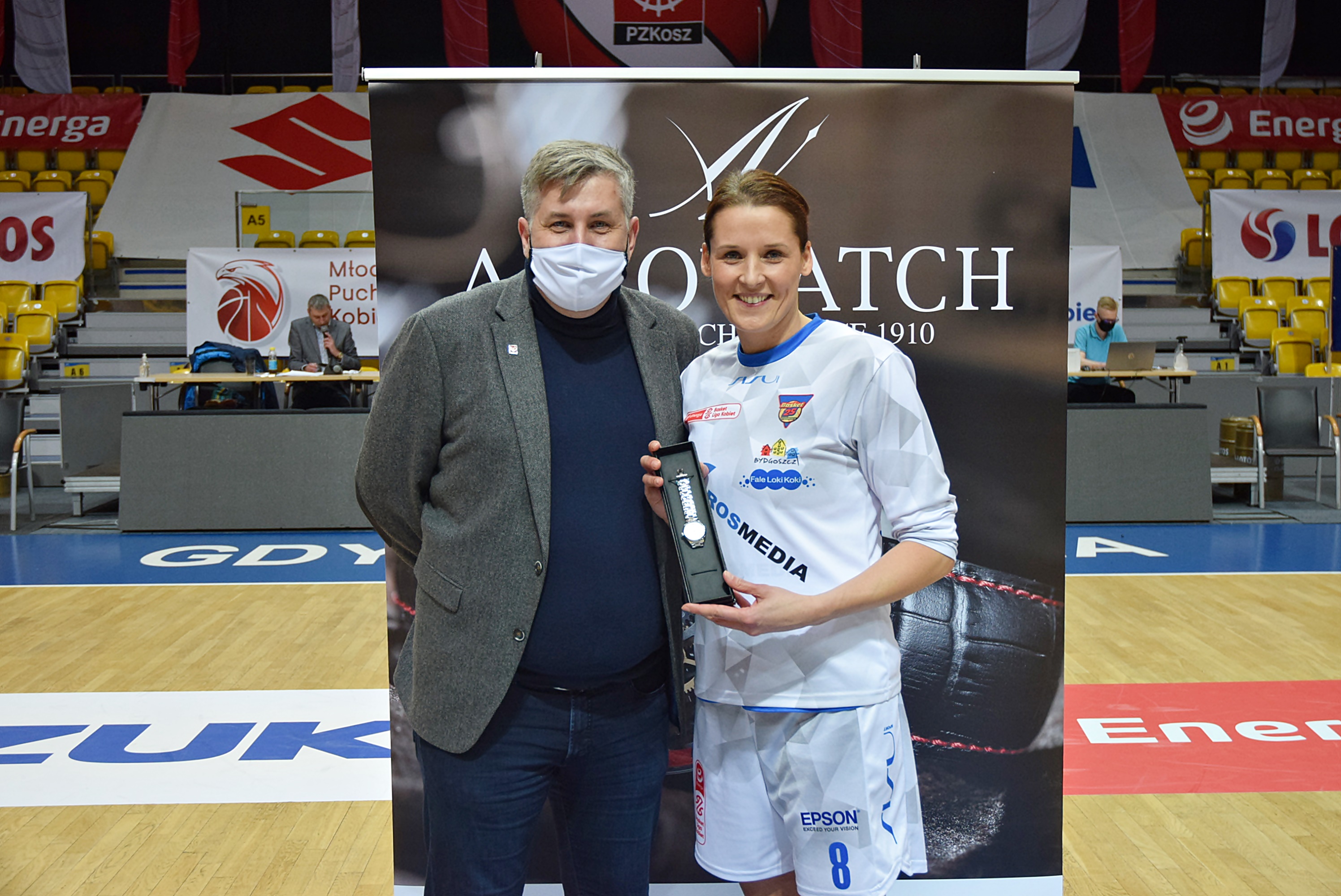 Nagrodą był zegarek marki AEROWATCH, który wręczył członek zarządu Polskiego Związku Koszykówki Pan Marcin Korpolewski.