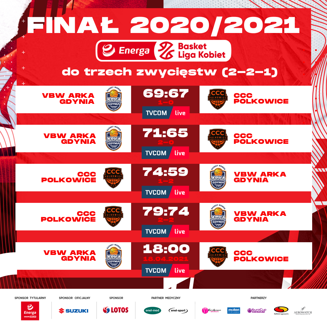 - Jestem już ponad 10 lat w polskiej koszykówce, a to jest to dla mnie najciekawszy i najlepszy finał w tym czasie. Arka to bardzo silna drużyna, potrafi grać i wygrywać… jednak w ostatnich dwóch meczach coś zaczęło szwankować. Jeśli jednak w tym ostatnim meczu utrzymają ten swój równy poziom, to będą cieszyć się z mistrzostwa Polski. CCC pokazało jednak swoją siłę, jest na fali i zostawia 200 – 300% serca na parkiecie, walczą do końca, nie ma dla nich straconych piłek i nie odpuszczają. Myślę, że 60% do 40% dla VBW Arki, gdyż grają u siebie i wiedzą, że te dwie porażki to nie był wypadek przy pracy. Drużyna z Polkowic stawia bardzo duży opór i idą po swoje. Tak więc przewaga własnego parkietu, mimo gry w małej hali powinna mieć tutaj decydujący wpływ na końcowy wynik – mówi Vadim Czeczuro, były trener m.in. DGT AZS Politechniki Gdańskiej oraz obecny szkoleniowiec reprezentacji Polski 3x3 U23.