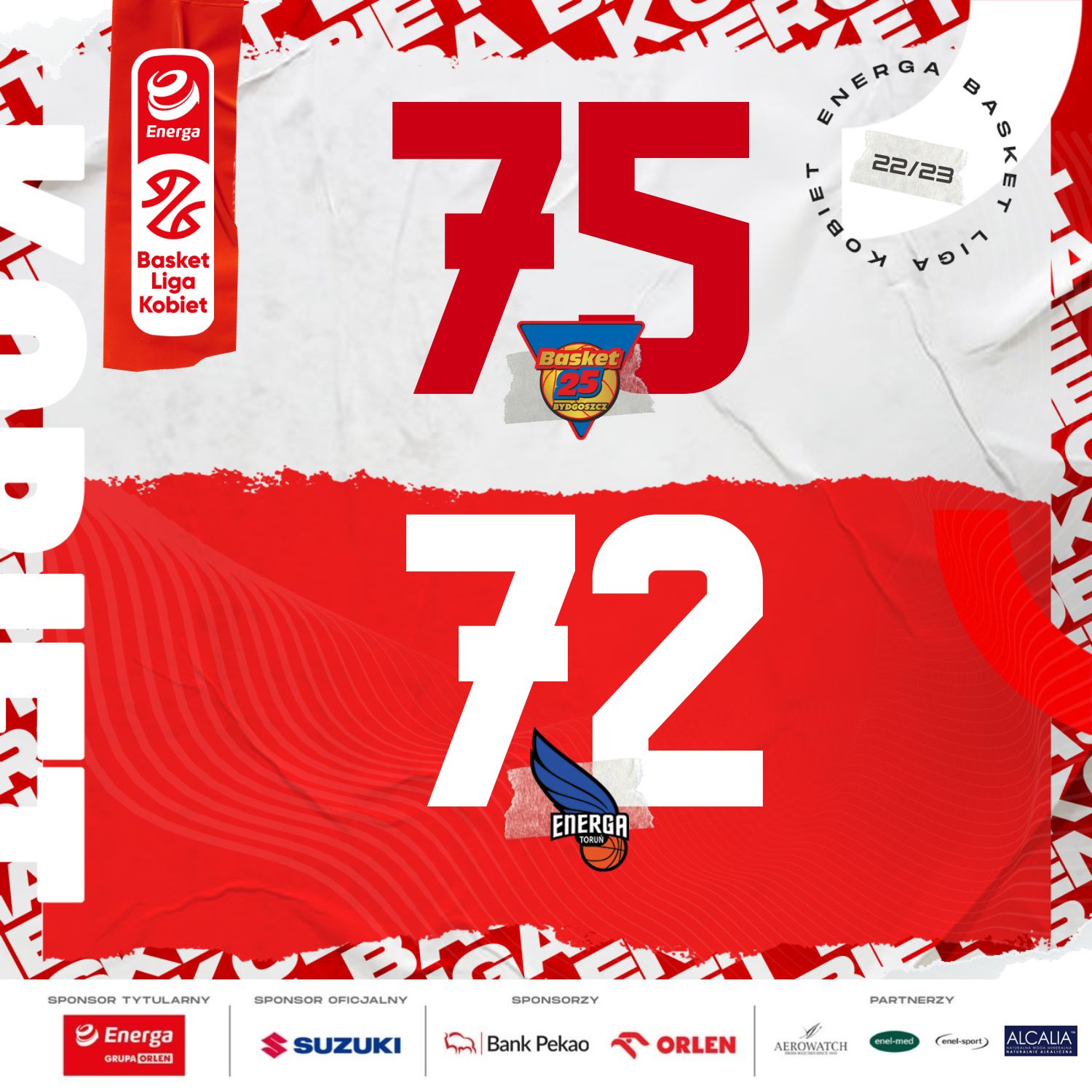 Do ogromnej niespodzianki doszło w derbach w Bydgoszczy, gdzie gospodynie pokonały walczącą o fazę play-off drużynę z Torunia. Wszystko rozstrzygnęło się w ostatnich sekundach, gdzie seria 5:0 dała ostatecznie długo wyczekiwane zwycięstwo w lidze. Najskuteczniejszą zawodniczką była Aleksandra Zmierczak, która rzuciła 22 punkty. W zespole z Torunia 24 punkty i 11 zbiórek zapisała na swoim koncie Vasiliki Louka, a 20 „oczek” dorzuciła Alexis Jones.