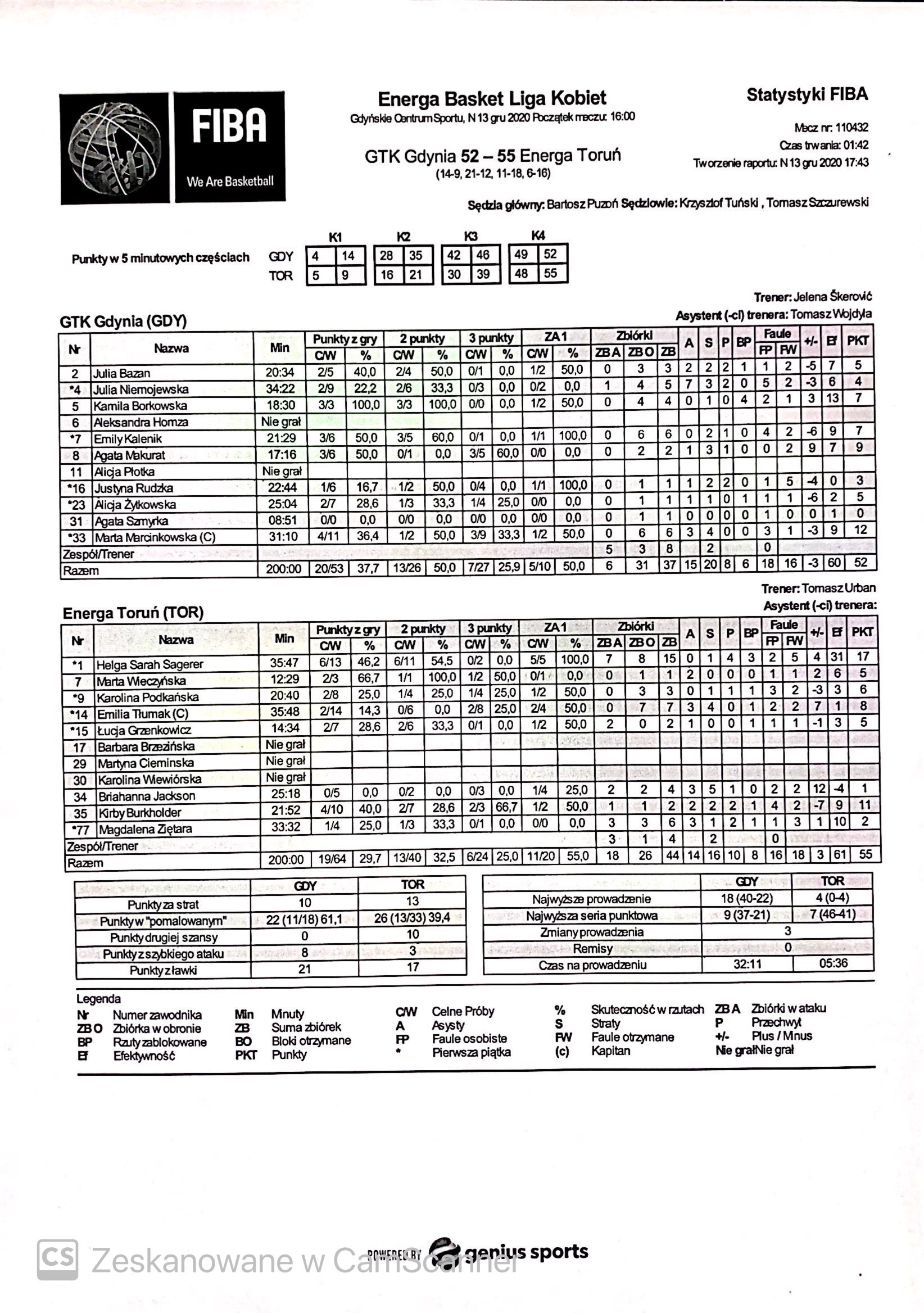 | GTK Gdynia | Kwarta 1 | Energa Toruń | ||