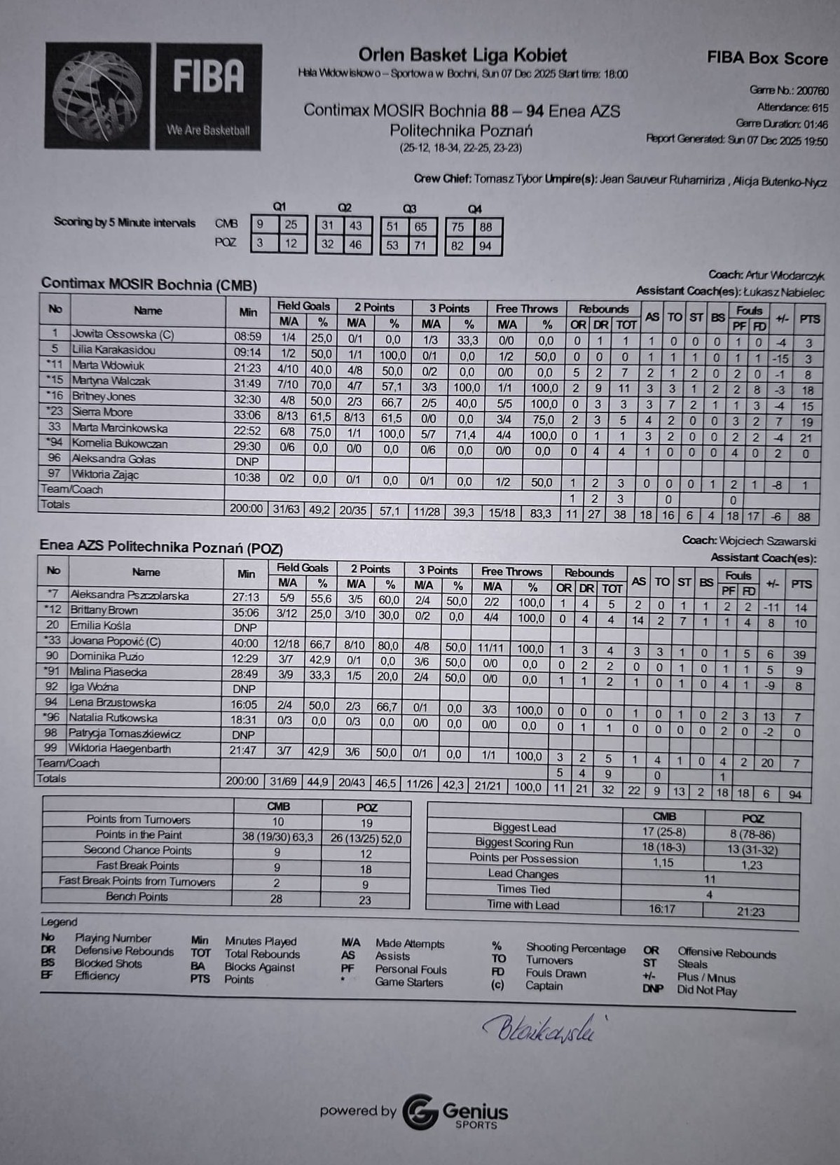 | 94 | Kornelia Bukowczan | 0 | 29:30 |   |   | 0/6 | 0.0 | 0/6 | 0.0 |   |   |   | 4 | 4 | 1 | 4 |   |   |   |   |   | -1 | 2 | |