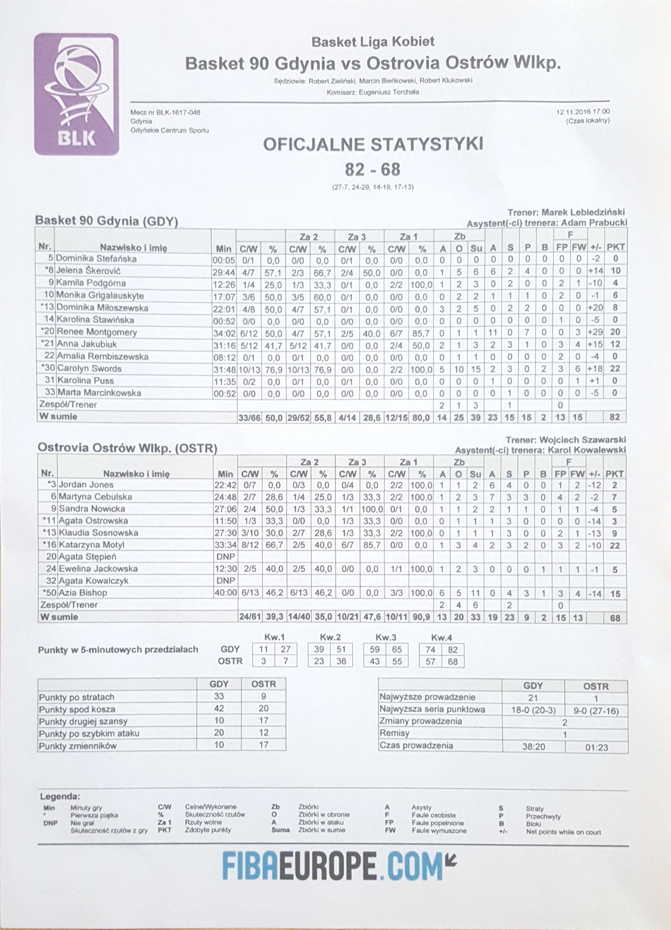 | 16 | Katarzyna Motyl | 22 | 33:34 | 2/5 | 40.0 | 6/7 | 85.7 | 8/12 | 66.7 |   |   | 1 | 3 | 4 | 2 | 3 | 2 | 3 | 2 |   |   | 23 | -10 | |