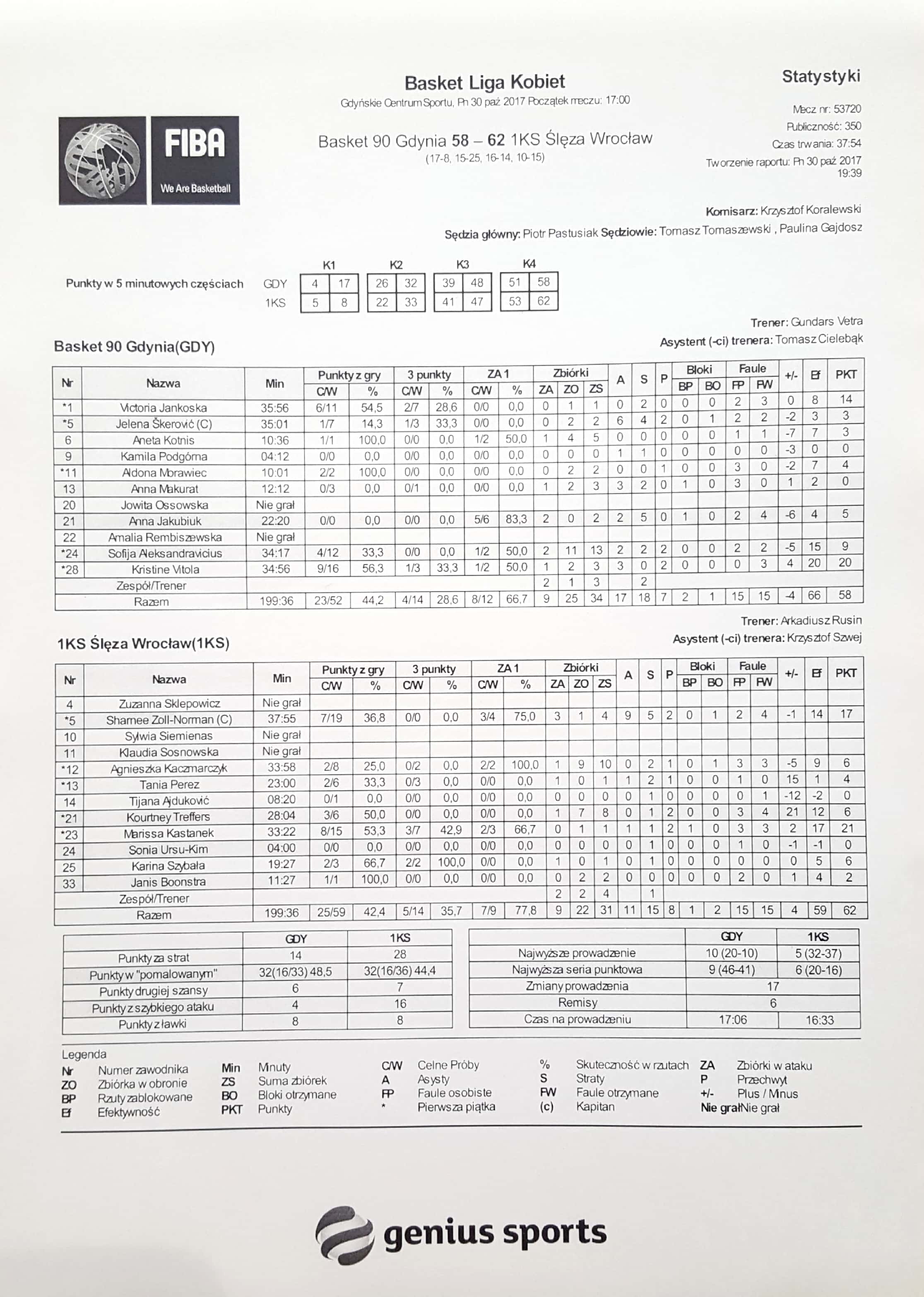 | Basket 90 Gdynia | Kwarta 1 | 1KS Ślęza Wrocław | ||