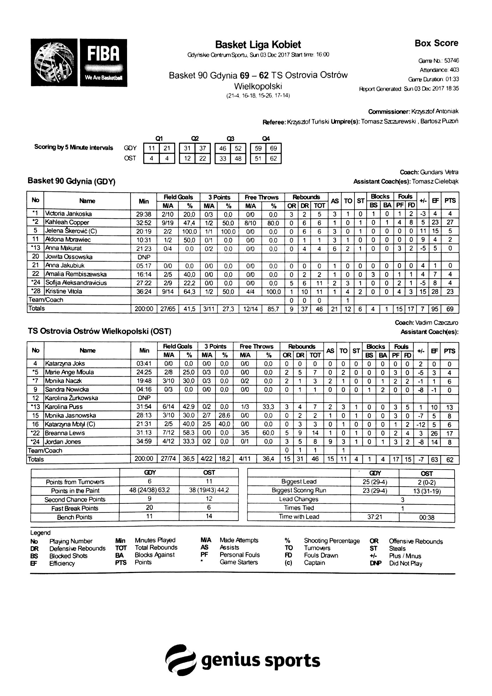| Basket 90 Gdynia | Kwarta 1 | TS Ostrovia Ostrów Wielkopolski | ||